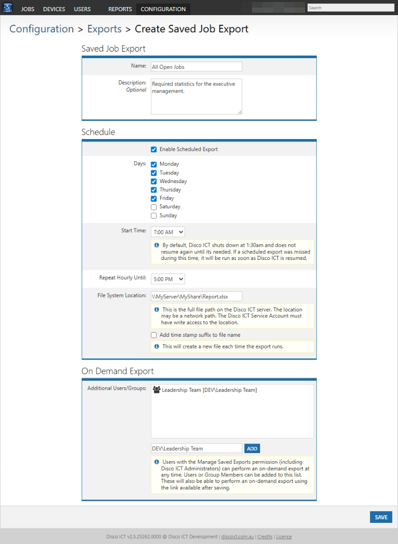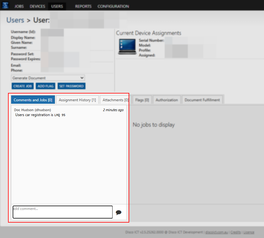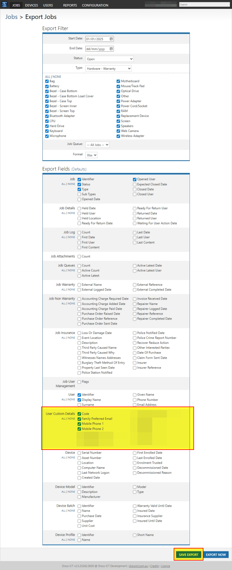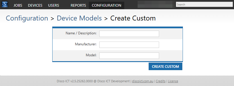 Disco. Options for Device Model, Profile, Batch, User, Location and